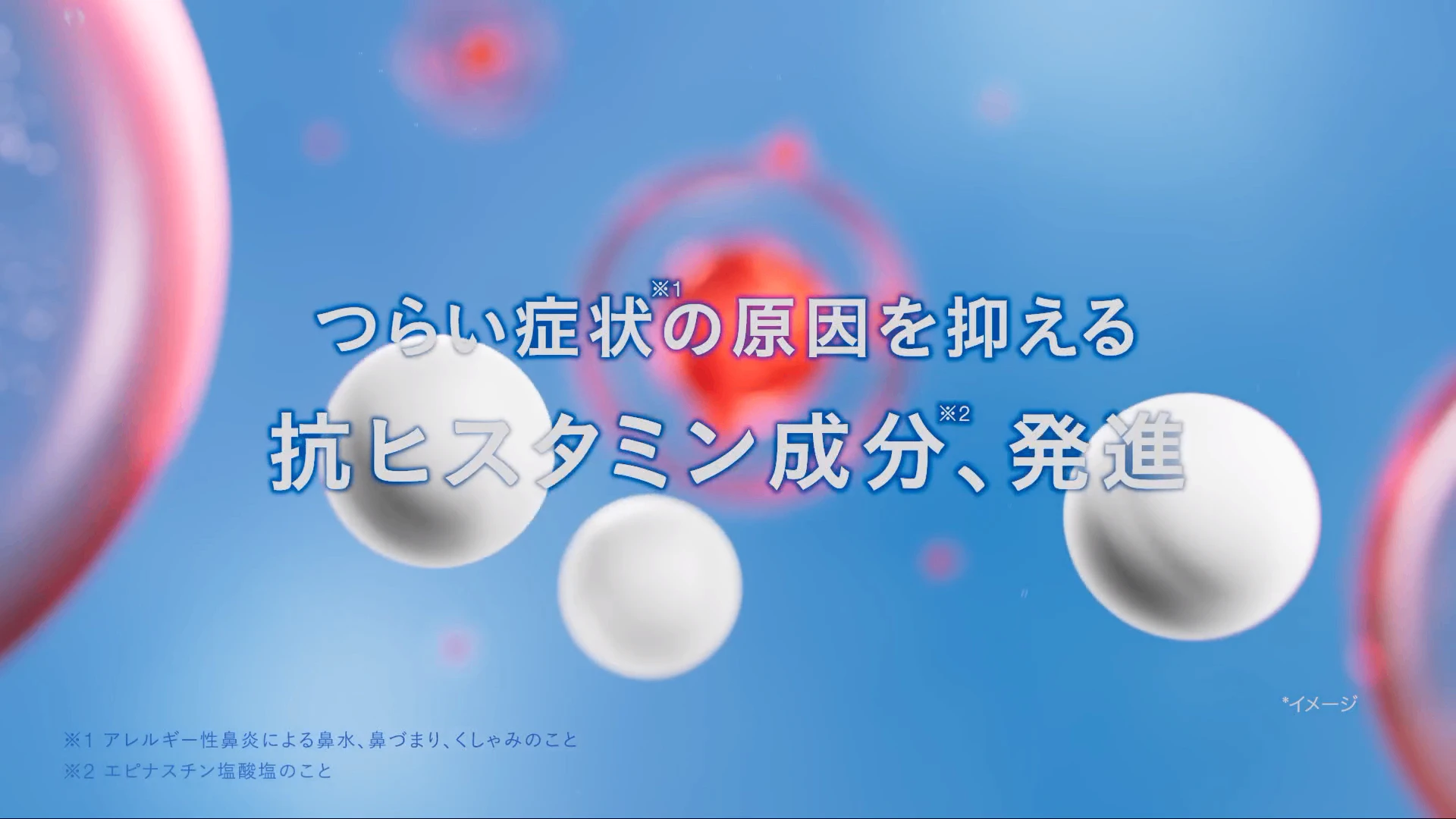 服用後、アレジオンの成分*が素早く溶け出し、ヒスタミンより先にターゲットへ到達。 原因物質が結合する「ポイント」を先回りしてガード。ヒスタミンを寄せ付けず、花粉による鼻炎の症状をしっかり抑え込みます。