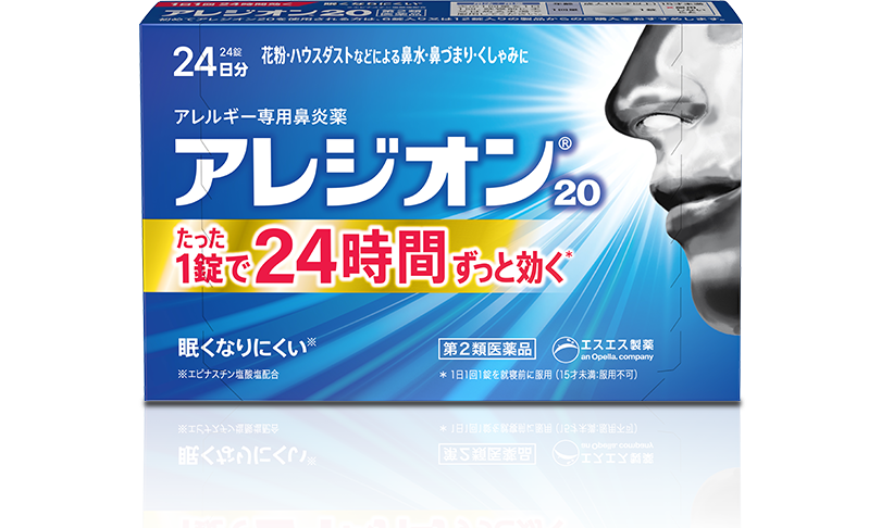 アレジオンは、 花粉などが原因のアレルギー性のつらい鼻炎症状を緩和する効果はそのままに、眠気が起こりにくく、口も渇きにくいお薬です。