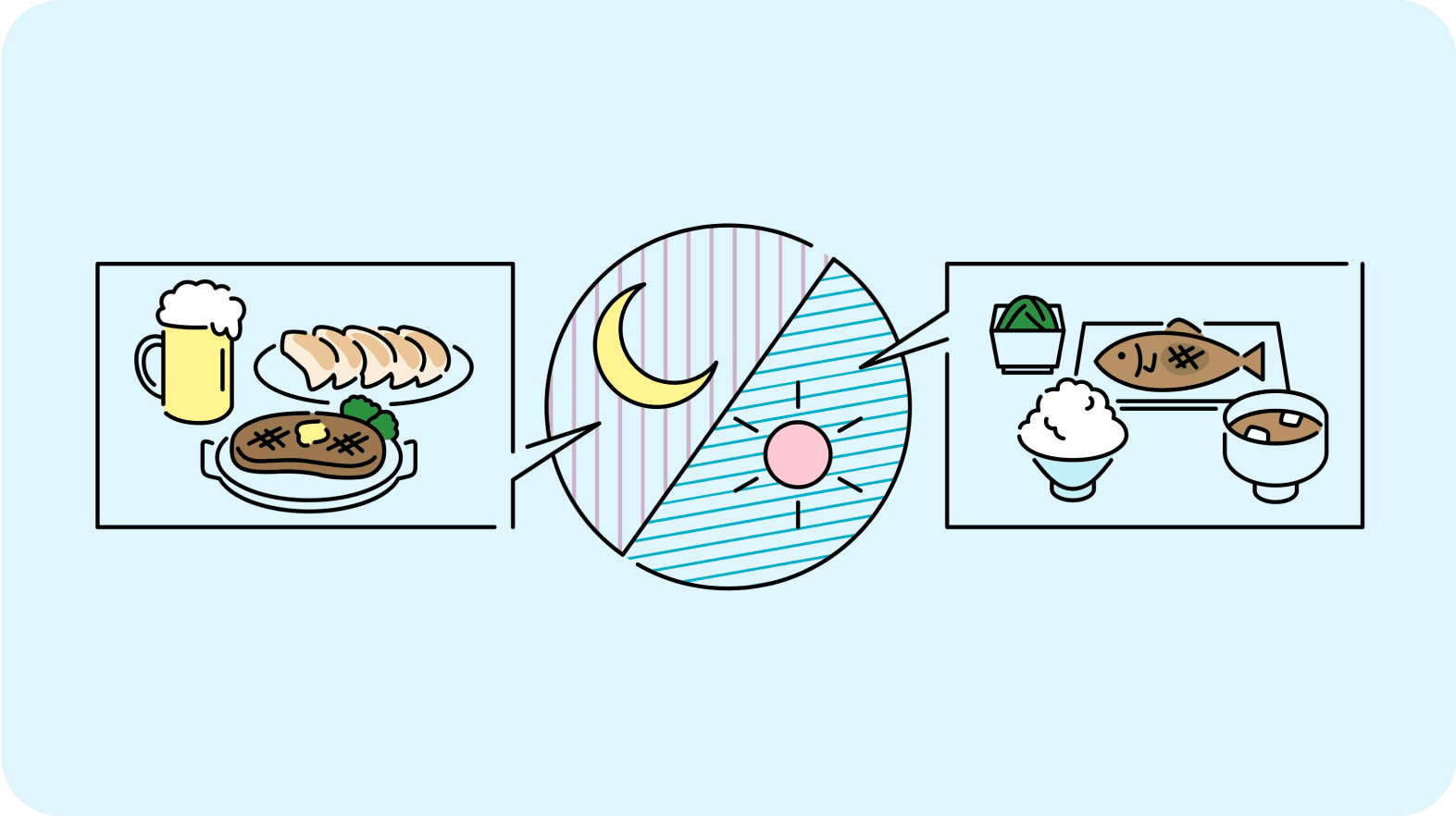朝食は、一日の活動が始まるサインとなって心と身体を覚醒させるだけでなく、脳のエネルギー補給の点でも重要です。脳が一日の活動をはつらつと始めるためにも、朝食をしっかりとることが大切です。また、夕食は最低でも寝る2時間前には終わらせるようにし、腹八分目を守ります。