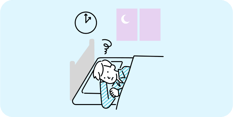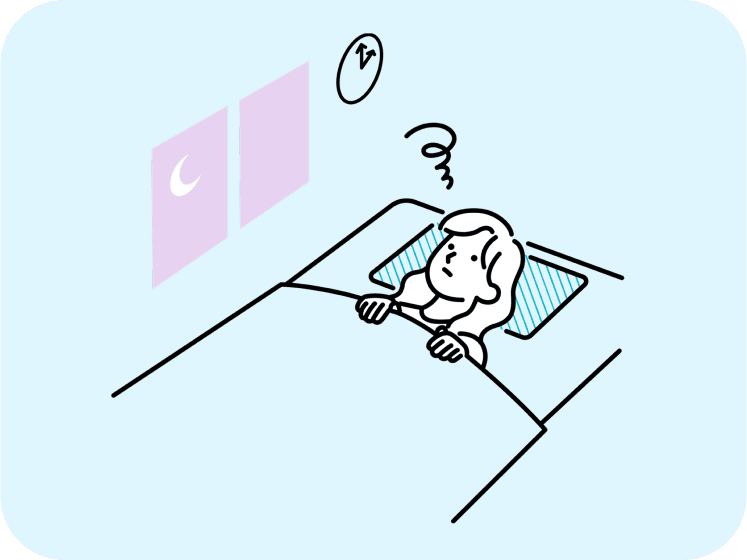 夜、眠れない時、早く寝なければと焦ると、余計眠れなくなることがあります。このようなことが続くと、今夜も寝られないのではないかと不安を感じるようになり、不眠を引き起こすことがあります。睡眠の正しい知識を身につけて、生活習慣や睡眠環境を見直すことで不眠の改善につながります。