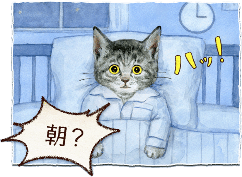 実は「猫」の語源は「寝る子」から。「寝てばかりいる猫が眠れなくて困っている」姿を通して、