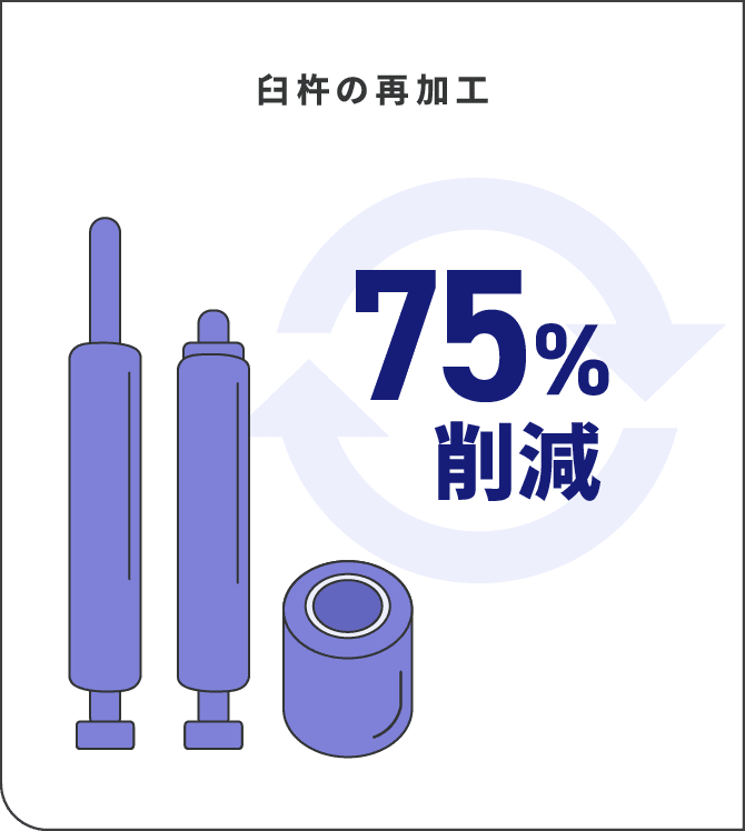 これまでは規定回数に達した臼杵は廃棄していましたが、サプライヤーと協力し、再加工により同じ臼杵を再利用することが可能となり、75%の廃棄削減を達成することができました。