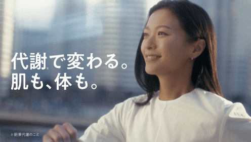 「代謝※1で変わる。肌も、体も。」というキャッチコピーとともに、自分らしいすこやかな美しさがあふれる日々を描いています。