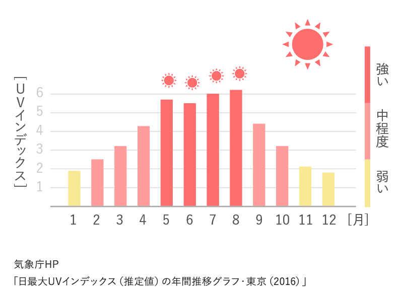 紫外線の量は夏に多いと思われがちですが、実は春頃から増えていきます。