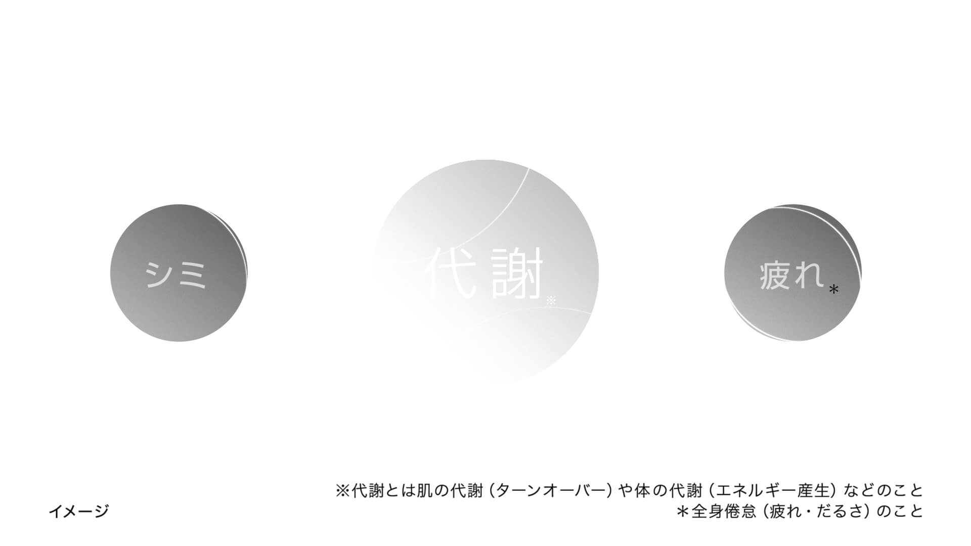 CGとナレーションで、「ハイチオールCプラス2」の代謝※2を助け、シミと疲れ※1を改善するメカニズムを分かりやすく解説します。
