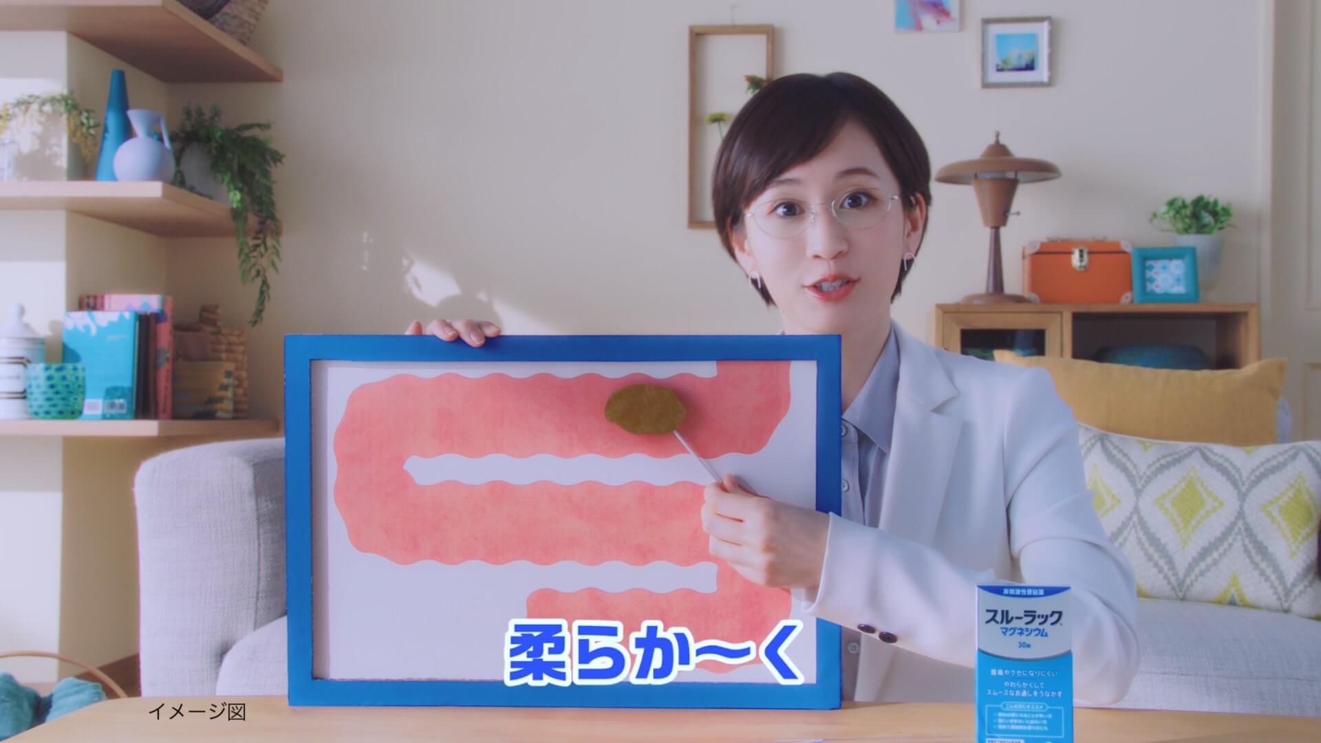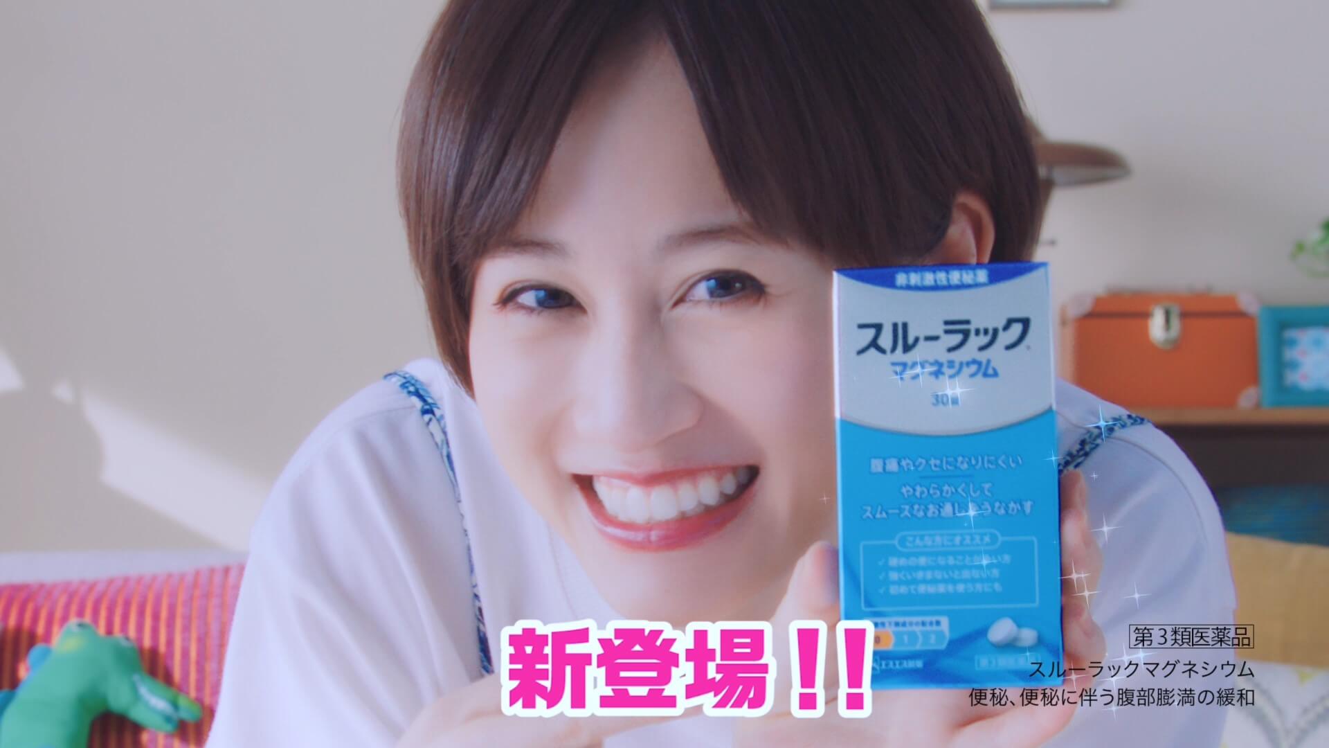 2021年4月に、腹痛やクセになりにくく※1、腸内に水分を集めることで硬めの便を柔らかくしてスムーズなお通じにする「スルーラックマグネシウム」が新登場しました。新TV-CMでは、便秘薬は腹痛やクセになりそうと思っている方の固定概念を覆す、「スルーラックマグネシウム」が新登場したことを前田さんが伝えます。2021年5月10日(月)から全国でオンエアいたします。