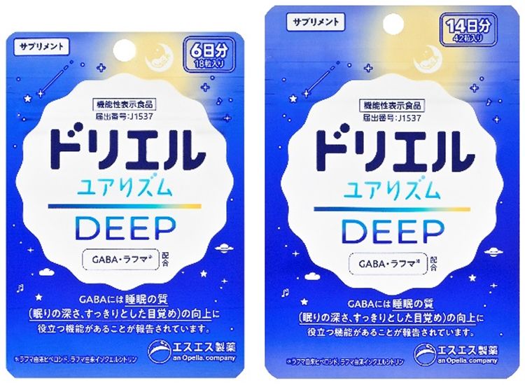 「ドリエル ユアリズム」は、睡眠の質を高め、充実した毎日にみちびく機能性表示食品です。深い眠りの質の向上をサポートするGABAと、睡眠リズムに関わるセロトニンとその代謝産物であるメラトニンなどに関与するラフマを配合。Wの睡眠サポート成分が睡眠の質の向上に役立ちます。睡眠の質の向上に特化したDEEP、睡眠の質の向上とストレスを緩和するRELAXの2種類をラインナップ。それぞれ、手に取りやすい18粒 / 6日分、続けやすい42粒 /14日分の2サイズ展開です。