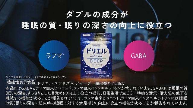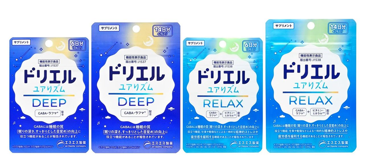 睡眠ブランド「ドリエル」のサプリメントの新製品「ドリエル ユアリズム」は、睡眠の質の向上をサポートし、充実した毎日にみちびく機能性表示食品です。深い眠りの質の向上をサポートするGABAと、睡眠リズムに関わるセロトニンとその代謝産物であるメラトニンなどに関与するラフマを配合。Wの睡眠サポート成分が睡眠の質の向上に役立ちます。睡眠の質の向上に特化したDEEP、睡眠の質の向上とストレスを緩和するRELAXの2種類をラインナップ。それぞれ、手に取りやすい18粒 / 6日分、続けやすい42粒 /14日分の2サイズ展開です。