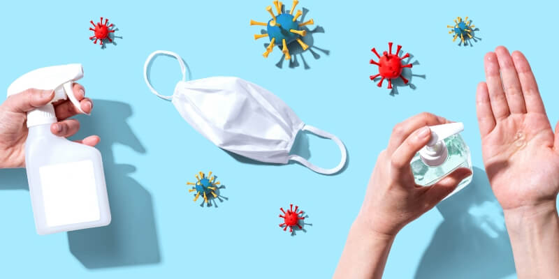 風邪などの感染症は、原因ウイルスが主に飛沫を介して体内に侵入することで感染するため、感染予防には、ウイルスの侵入を防ぐ感染防止策が必要です。また、自身が感染者である場合には、マスクを着用することで周囲への感染拡大を防ぐことができます。接触感染を防ぐためには、手洗いや身の回りの物の消毒も重要です。