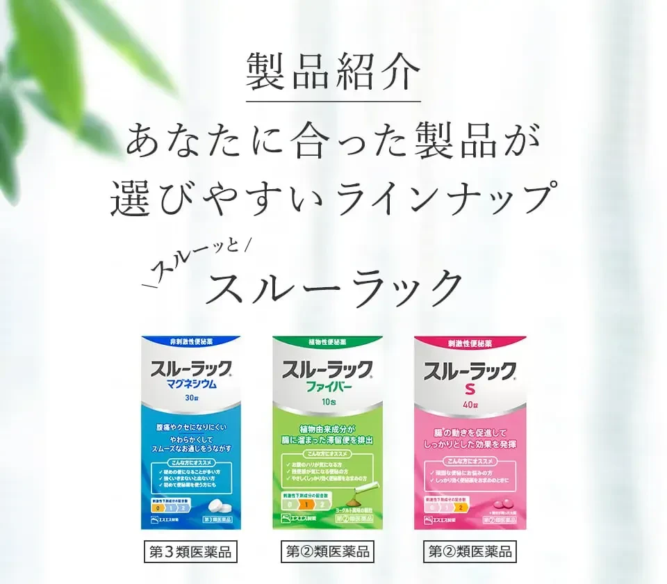これらの医薬品(スルーラックファイバー、スルーラックS)は、薬剤師、登録販売者に相談のうえ、「使用上の注意」をよく読んでお使いください。
