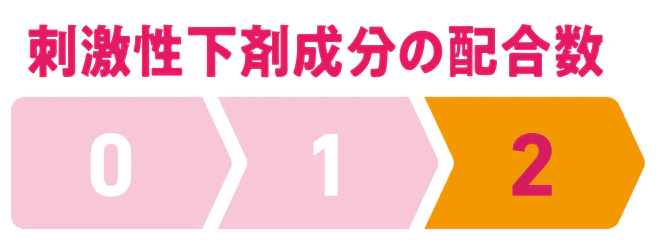 この製品の刺激性下剤成分の配合数2は、瀉下薬製造販売承認基準の刺激性下剤に該当する成分センノシドおよびビサコジルを指します。選ぶ際の参考にしてください。